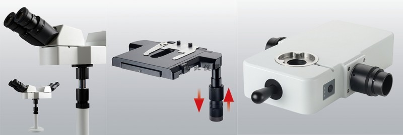 | 主镜 30° 倾斜,倒像,无限远铰链式三目观察头,瞳距调节 :50mm-76mm。三档分光比,双目 : 三目 =100:0 或 20:80 或 0:100 | |