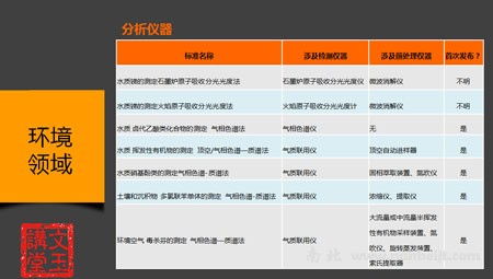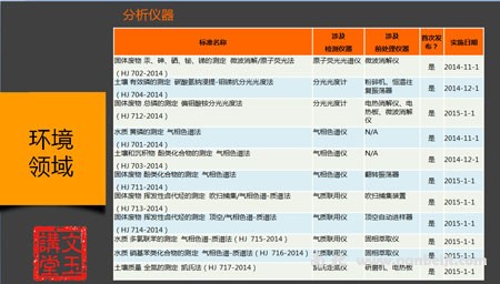 环境领域已经或即将实施的标准与涉及仪器分析