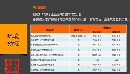 从以上四个表格我们可以一一对应出个标准中涉及到的仪器都是什么,并且针对相关行业的标准可以看出我们在环保领域的还是有很大的市场。