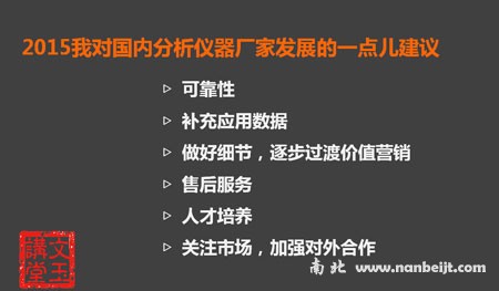 在做好我们仪器内部的一些事情后,再一个就是需要加强我们的人才培养,并且关注市场,加强对外合作,只有以上的几点都做好,我们的企业,我们的产品才能立于不败之地。
