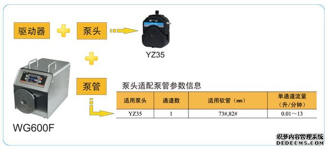 WG600F调速型蠕动泵适用泵头及软管、流量参数: