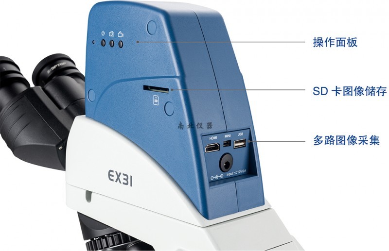 30°观察头,铰链式双目,铰链组可 360°旋转,便于眼点提升,固定式目镜筒,瞳距调节范围 50-75mm |