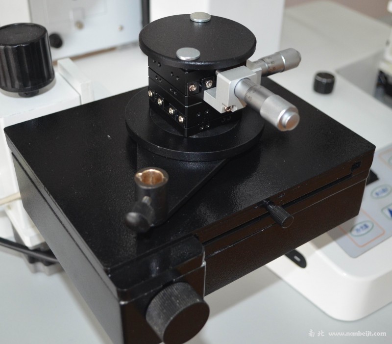载物台:尺寸:180mmX150mm ,横向80mm,纵向80mm,垂直60mm,水平转动角度0°-360°,台面任意方向倾角0°-60°,即可手动又可通过计算机实现载物台单边或双边载物台水平旋转,实现三维运动