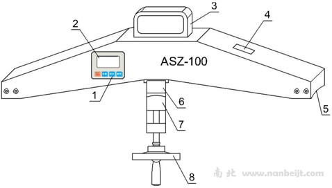1、功能按键 2、液晶显示屏 3、手柄 4、Rs232九孔插座与电源