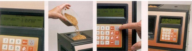 1.待测谷物倒入漏斗;2.按进样键,自动进样 ;3.仪器测试并显示结果;