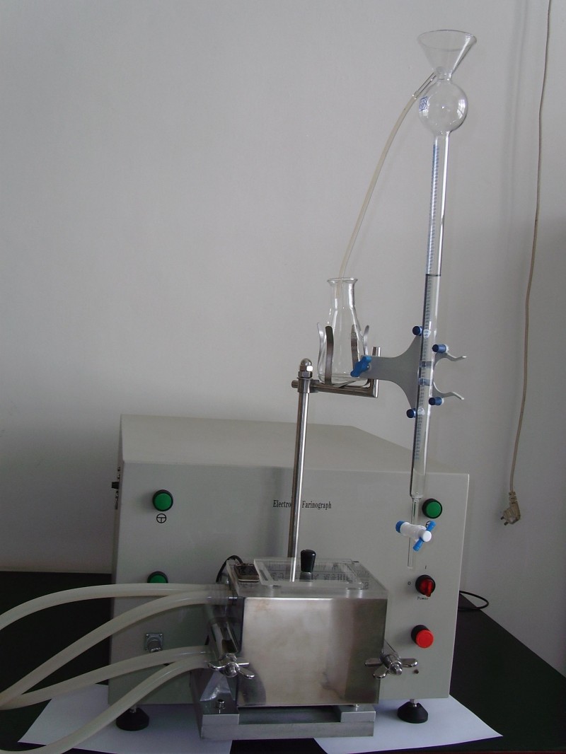 | 定量小麦粉加适量水揉和,由计算机系统绘制搅拌阻力随时间变化的坐标图即粉质曲线,从加水量和记录搅拌性能的粉质曲线计算小麦粉吸水量及评价面团搅拌时的形成时间、稳定时间、弱化度等特性,用以评价面粉筋力强度。 |
