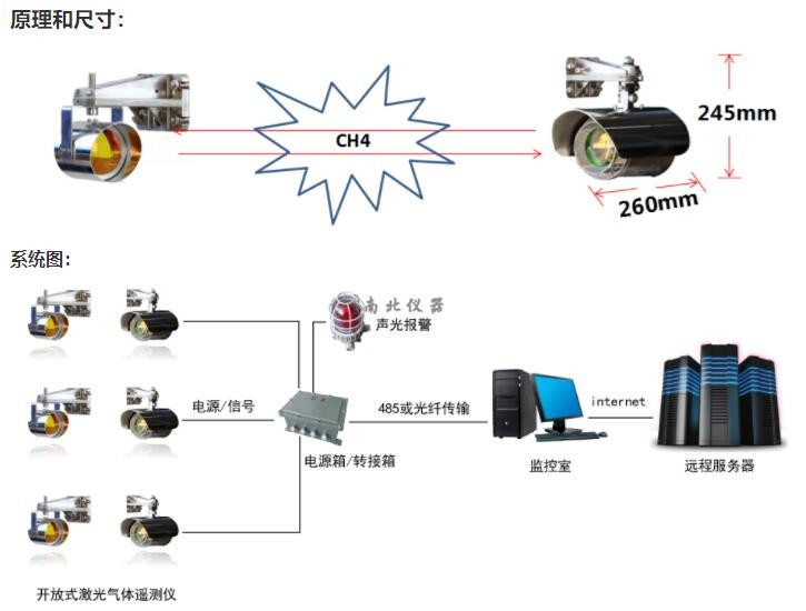 S350KS由激光收发装置、反射装置、固定支架等组成,采用激光吸收光谱技术(TDLAS)原理,对位于激光收发装置和反射装置之间的甲烷气体浓度进行远距离实时在线监测,并具有信号采集、转换、发送等功能的仪器。