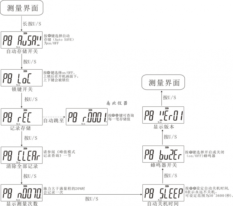*Note7:当施力扭矩值达到满量程110%时,红灯亮,蜂鸣器长鸣,屏幕出现“Er0”,请停止施力并按“C”归零。