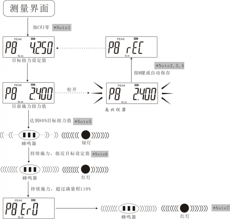 *Note6:当施力扭矩值达到目标扭矩值时,红灯亮,蜂鸣器长鸣。
