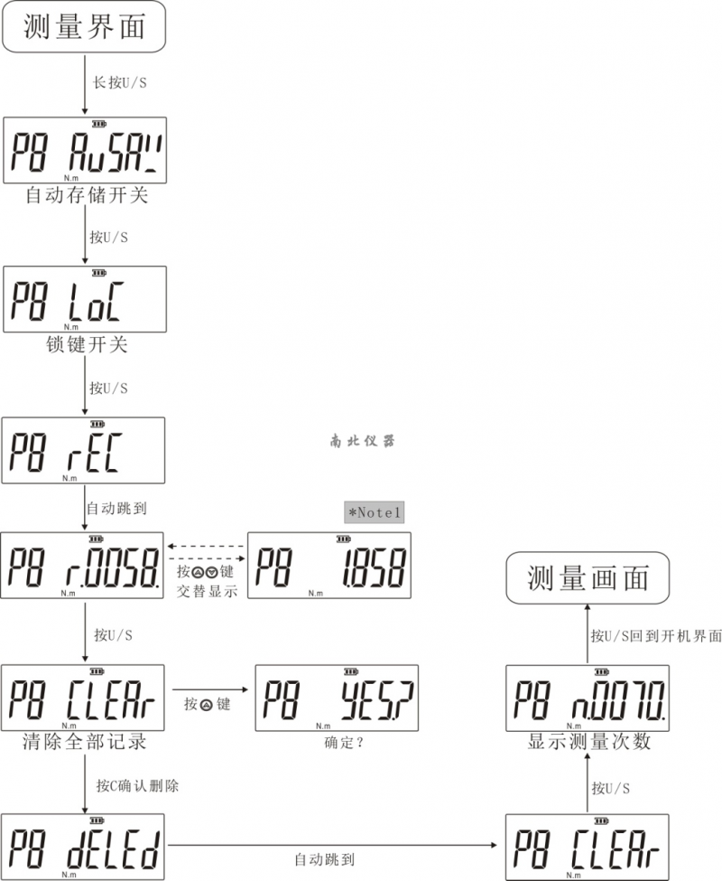 *Note1:若出现“Er0”画面,表示此扭矩传感器曾经施力超过满量程扭矩值110%,请按“C”。