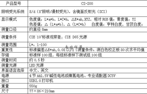 CS-200是为了弥补CS-10在实际应用中的不足而开发的色差仪,提高了测量精度,并且增加了黄度白度测量功能,是目前国内性价比高的色差仪。