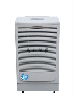 本产品属冷冻式除湿机,整机有压缩机、热交换器、风扇、机壳及控制器组成,其工作原理是:由风扇将潮湿空气抽入机内,经过制冷系统(压缩机,蒸发器,冷凝器)相互作用下凝结成霜,系统自动升温化霜成水流入盛水箱,产生出干燥空气排出,如此循环使室内湿度降低,潮湿空间逐步达到干爽的效果。