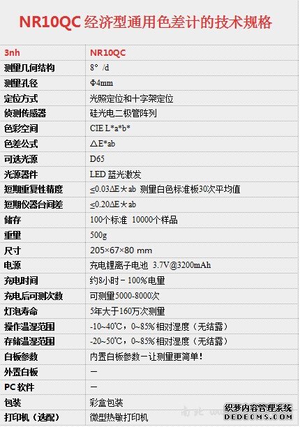 NR10QC是依据CIE(照明委员会)的相关标准、**标准研发的精密仪器。该色差计采用全新关键元器件,经精心设计,具有稳定、操作简单、易学易懂、经济实惠等特点。
