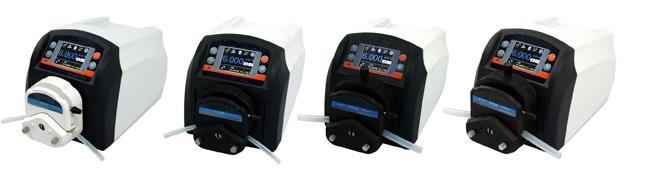 NB-RDB-301L流量型智能蠕动泵流量范围0.006~1600毫升/分钟。采用彩色液晶和触摸屏技术,操作界面简单,直观,明了。主要适用于精准流量传输控制,用户可以根据自己的需要流量显示,流量控制,流量累计。同时本产品实现了重复定时定量传输。适用于计量和定量给料,精度高可达0.5%,为了减小不必要的蠕动泵噪音,采用了智能温控技术。在RS485通讯中,因为采用了MODBUS协议,更易于与其他控制设备如计算机,人机界面,PLC等连接。