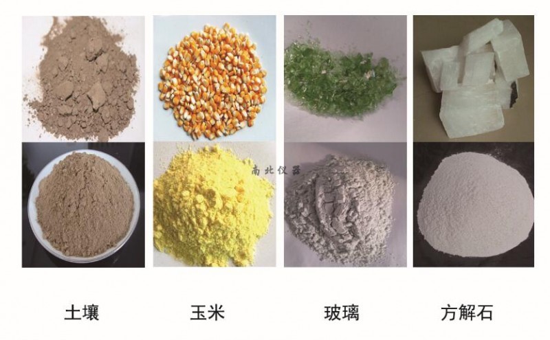*土壤、煤、焦炭、岩石矿物 、玻璃、 植物、农产品、材料、建筑原料、药品、陶瓷、食品、香料、水泥等